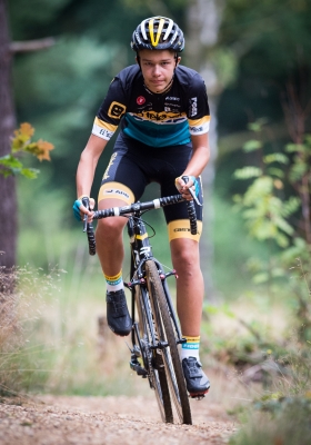 Adreas Goeman is nieuw in ons team. Als laatstejaarsnieuweling maakte hij vorige winter voldoende indruk op onze ploegleider Kris Wouters zodat hij een kans krijgt. Welk menu moeten de veldritten hem bieden? Zoals heel veel crossers houdt hij van modderomlopen en hellingen, vertelt Andreas. Geef hem een lastige omloop met veel slijk en veel bergop, en je gaat hem voorin zien rijden. Een lange adem en een forse pedaaltred zijn zijn capaciteiten. “Dan kan ik me inderdaad uitleven. Laat me op het einde van zo’n lastige wedstrijd bovendien sprinten en ik kan de koers mogelijk naar mijn hand zetten, want mijn spurt is redelijk rap. Maar niet alles is al op niveau. Ik heb nog veel te leren. Snellere omlopen zorgen wel eens voor problemen. En bij de start klik ik soms uit mijn pedalen wat altijd een paar plaatsen kost, maar ik oefen erop, dus been ik langzaam bij. Ik doe in alles mijn uiterste best zodat ik hoop op mooie uitslagen. Het zou tof zijn als ik als eerstejaarsjunior een reeks top tien-plaatsen verzamel. Het zou alvast een goede basis vormen om het jaar nadien hogere ogen te gooien. Dan zijn goeie uitslagen wél nodig”, beseft Andreas. Hij is uit goed hout gesneden.